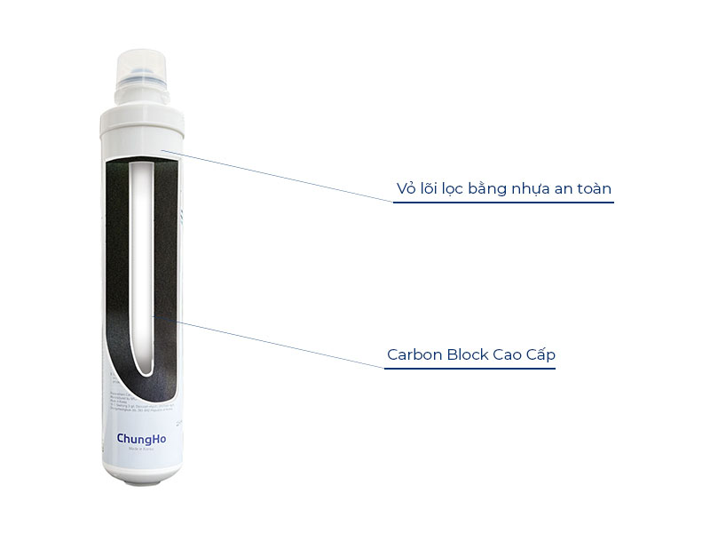 Lõi lọc nước ChungHo Carbon Block 13 inch là lõi lọc số 2 trong hệ thống máy lọc nước M9 Undersink, đóng vai trò khử mùi, loại bỏ clo dư và các hóa chất độc hại. Với vật liệu than hoạt tính cao cấp Calgon (Mỹ), cấu trúc nén dạng khối và thiết kế nguyên khối Quick Change, lõi lọc mang đến hiệu quả vượt trội về độ an toàn, tiện lợi và khả năng cải thiện hương vị nước uống.
