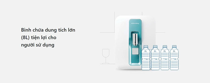 Bình chứa lớn 8L đủ nước sinh hoạt, uống hàng ngày cho gia đình nhỏ.