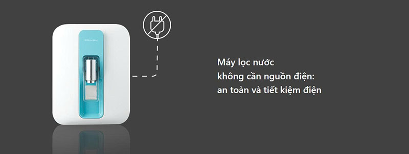 Không cần điện, không cần bơm phụ trợ chỉ cần kết nối nguồn nước máy, là bạn đã có máy lọc sẵn sàng.