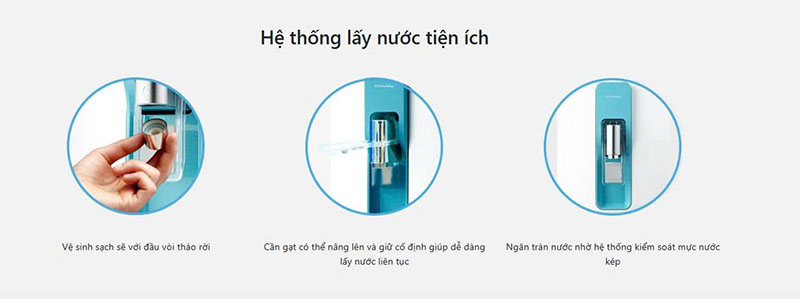 Lấy nước đơn giản, tiện lợi với vòi nước cao, thao tác dễ dàng, phù hợp với mọi lứa tuổi.