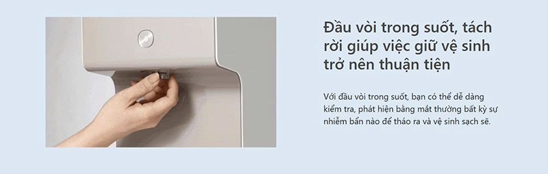♦ Vòi nước cao, có thể tháo rời để vệ sinh giúp dễ dàng làm sạch, kiểm tra chất lượng nước và đảm bảo vệ sinh lâu dài.