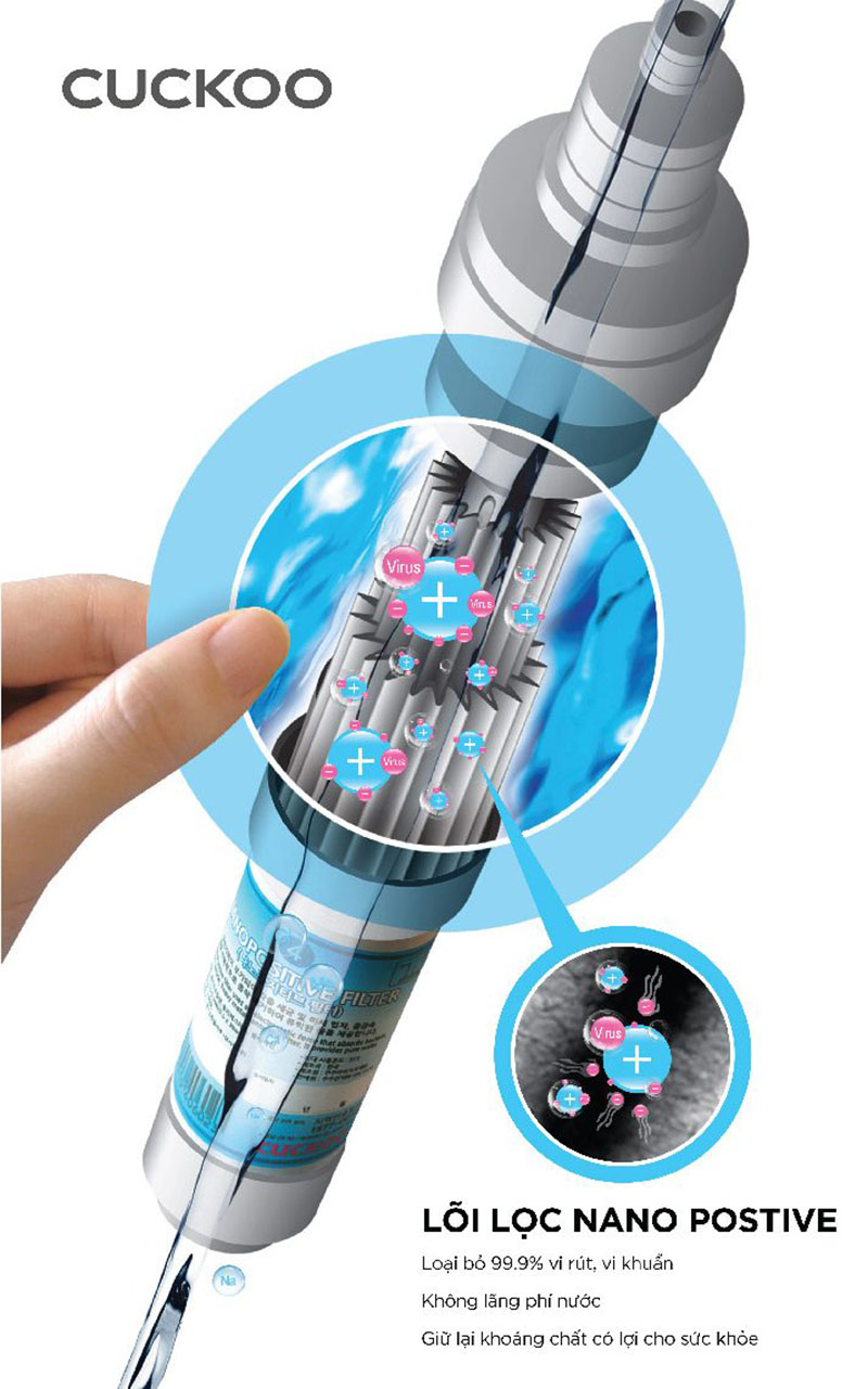 ♦ Công nghệ Nano Positive lọc sạch 99.9% vi khuẩn, giữ khoáng tự nhiên