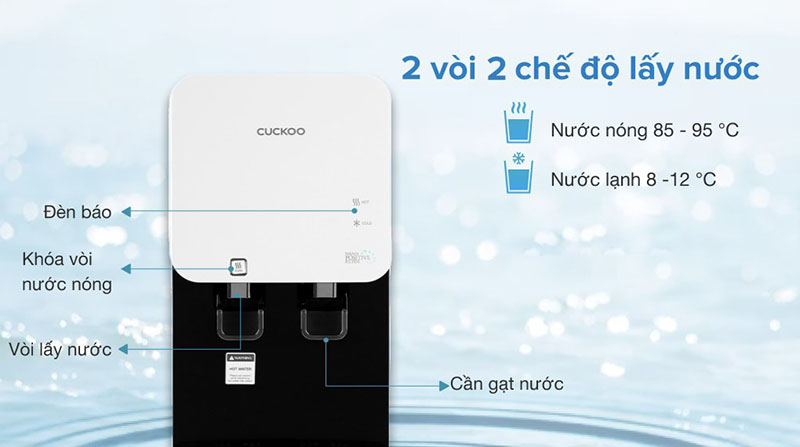 ♦2 vòi nước nóng – lạnh riêng biệt, nước nóng lên đến 95°C, nước lạnh khoảng 6°C.