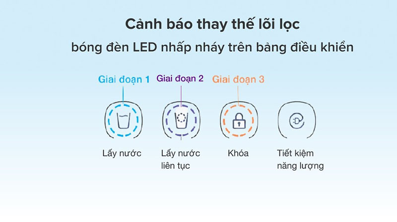 ♦ Tự động báo thay lõi, đảm bảo chất lượng nước luôn đạt chuẩn
