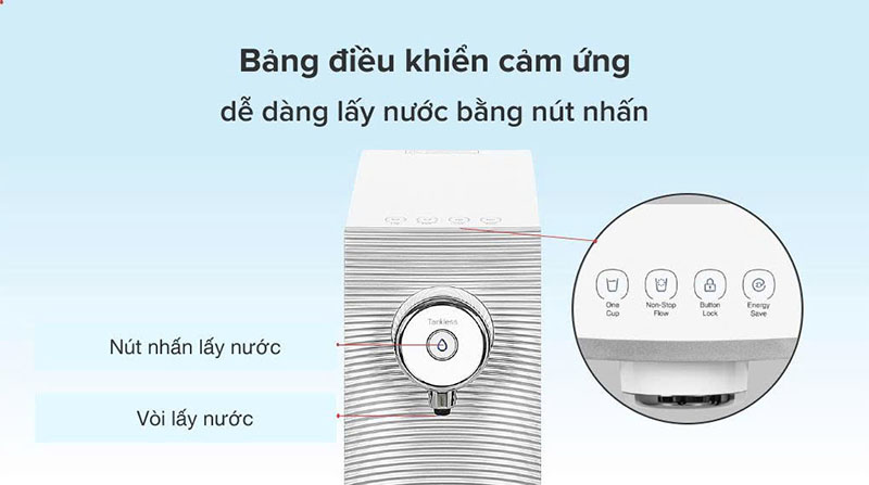 Máy hoạt động với công suất chỉ 14.5W, giúp tiết kiệm điện năng tối đa khi sử dụng lâu dài – một lợi thế lớn so với nhiều dòng máy lọc nước truyền thống.