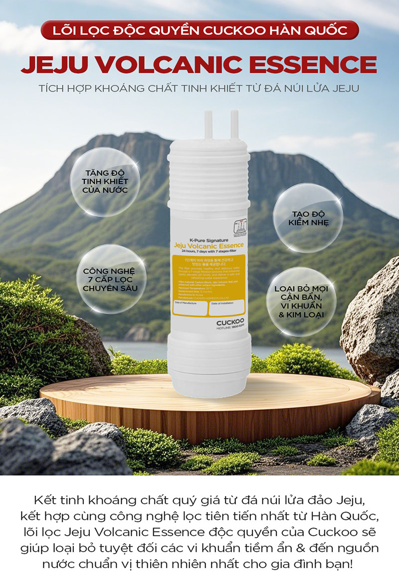 Trung tâm của triết lý này chính là lõi lọc độc quyền Jeju Volcanic Essence – được phát triển từ khoáng chất của đá núi lửa đảo Jeju. Lõi lọc này đóng vai trò như bước hoàn thiện cuối cùng, giúp: