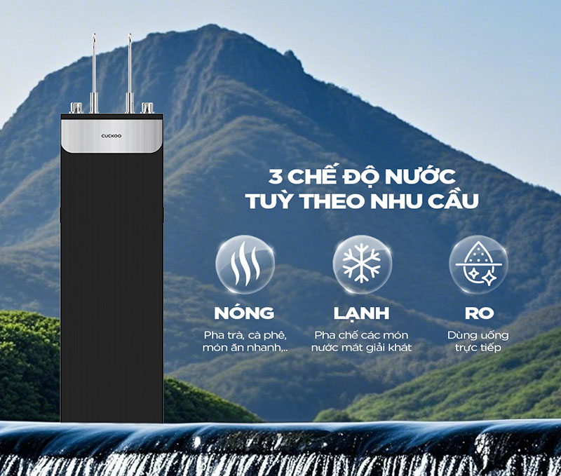 ♦ 3 chế độ nước nóng – lạnh – RO tiện nghi cho mọi nhu cầu