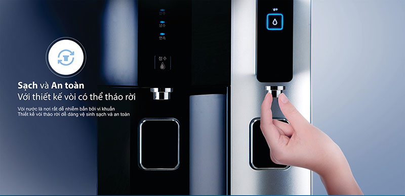 Vòi lấy nước là khu vực dễ nhiễm khuẩn nếu không vệ sinh thường xuyên. Với thiết kế tháo rời độc đáo, người dùng có thể dễ dàng vệ sinh vòi, đảm bảo an toàn tuyệt đối trong từng lần sử dụng.