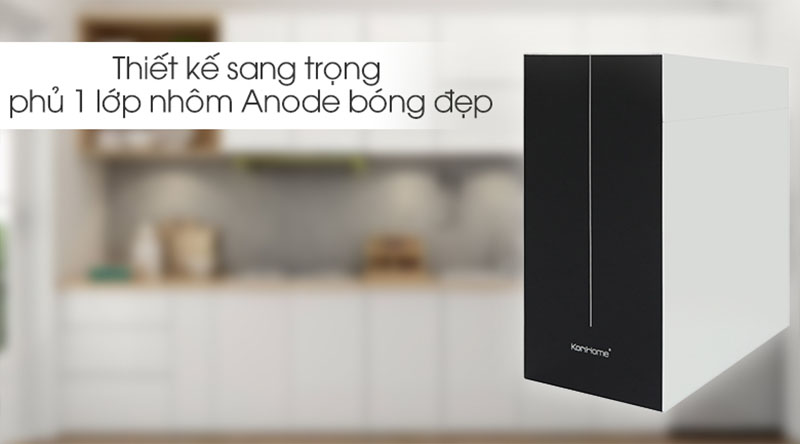 Phối hợp giữa mặt Mica đen sáng bóng và ánh bạc từ nhôm tạo nên tổng thể hài hòa, tinh tế, phù hợp với nhiều phong cách nội thất. Thiết kế hiện đại giúp máy lọc nước K91 trở thành điểm nhấn thẩm mỹ trong gian bếp của bạn.