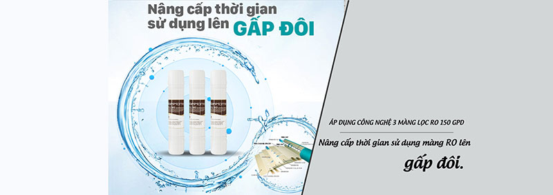 ♦ 3 màng RO 150GPD – công suất lớn, lọc nhanh và sạch sâu