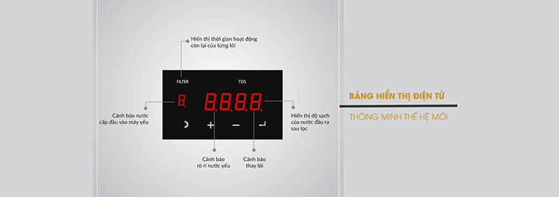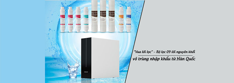 | Hệ thống lọc | Hệ thống 9 lõi nhập khẩu Hàn Quốc, công nghệ lọc không bình áp |