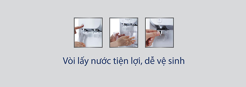 Hệ thống vòi lấy nước được thiết kế thân thiện: dễ thao tác, tháo lắp vệ sinh nhanh chóng. Ngoài ra, máy còn có khóa vòi nóng an toàn cho gia đình có trẻ nhỏ.