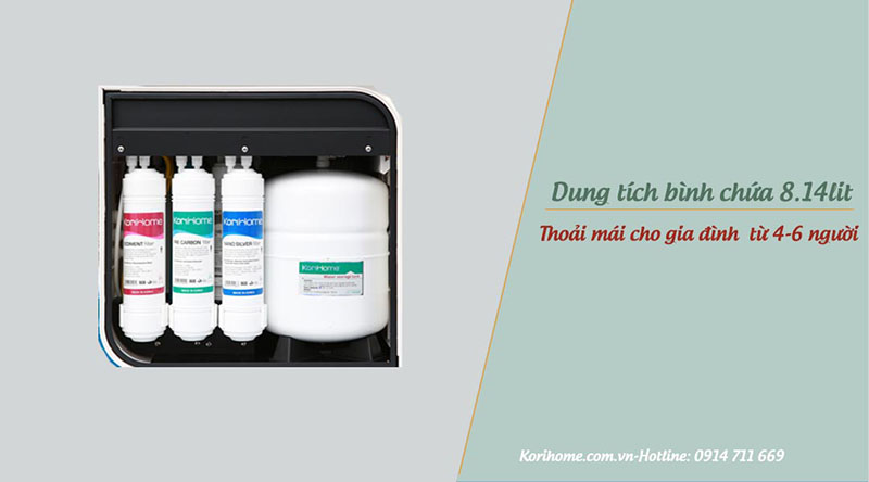 Máy trang bị bình áp thép cao cấp dung tích danh định 8L (~4.5L nước sử dụng thực), đạt chuẩn an toàn thực phẩm, bảo đảm độ tinh khiết của nước không bị ảnh hưởng trong quá trình lưu trữ.