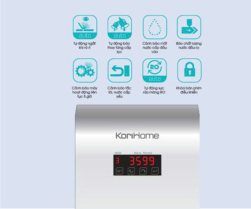 ♦ Tích hợp báo thay lõi, sục RO, khóa trẻ em tiện dụng