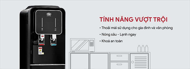 ♦ Dung tích bình nóng 2.2 lít và bình lạnh 3.4 lít – đáp ứng đủ nước dùng cho gia đình/văn phòng. ♦ Làm lạnh nhanh bằng Block Samsung/LG, làm nóng sâu, khóa an toàn vòi nóng bảo vệ người dùng.
