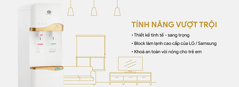 ♦ Trang bị khóa an toàn vòi nóng và block làm lạnh êm ái, tiết kiệm điện.