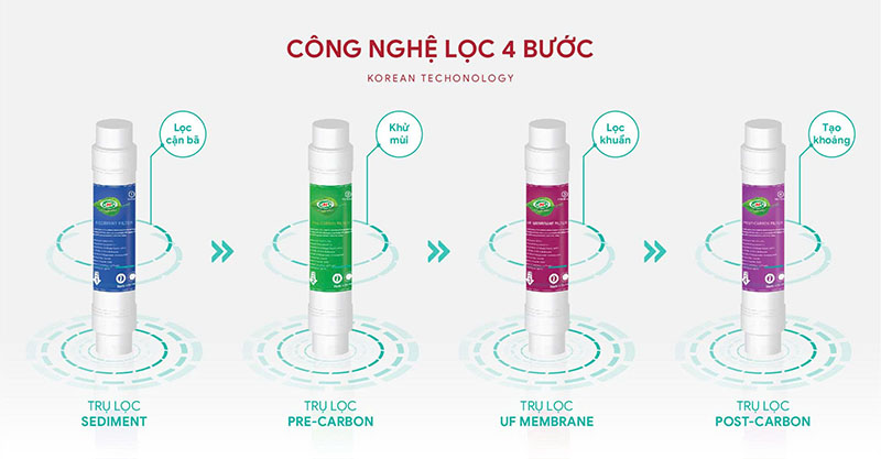 | Số lõi lọc | 4 lõi (Sediment, Pre Carbon, UF Membrane, Post Carbon) |