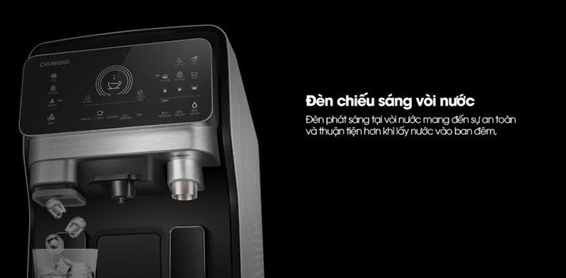 Đèn chiếu sáng tại vị trí vòi lấy nước giúp bạn sử dụng an toàn và tiện lợi vào ban đêm – một chi tiết nhỏ nhưng vô cùng hữu ích trong sinh hoạt hàng ngày.