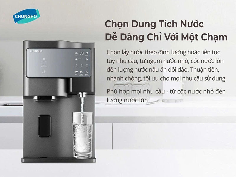 Bạn có thể chọn nước 120ml – 250ml – 500ml chỉ với một nút bấm, phục vụ nhanh chóng cho nhu cầu uống nước trực tiếp, pha sữa, nấu mì hay pha trà mỗi ngày.