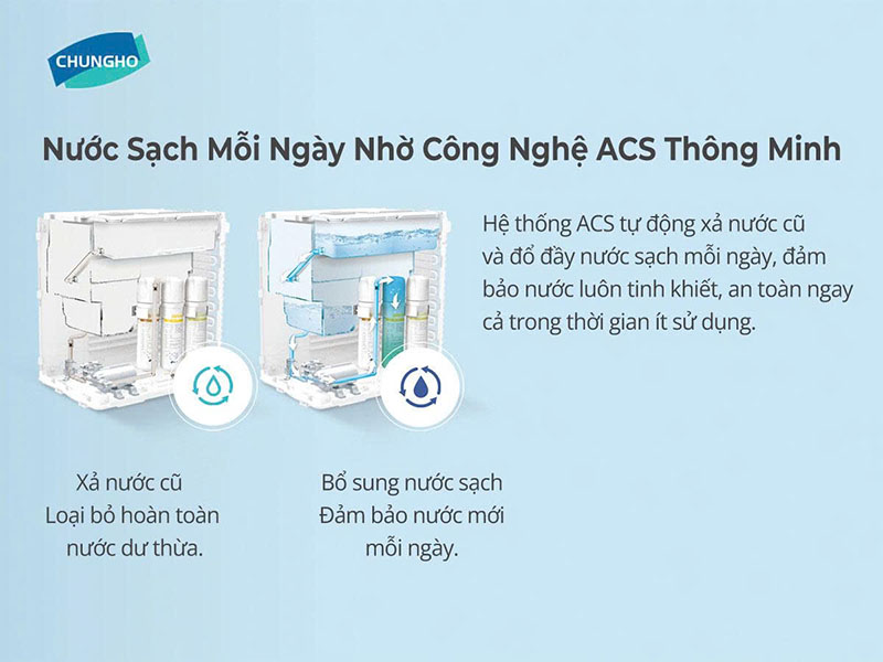 - ♦ Tự động xả nước cũ – bổ sung nước mới