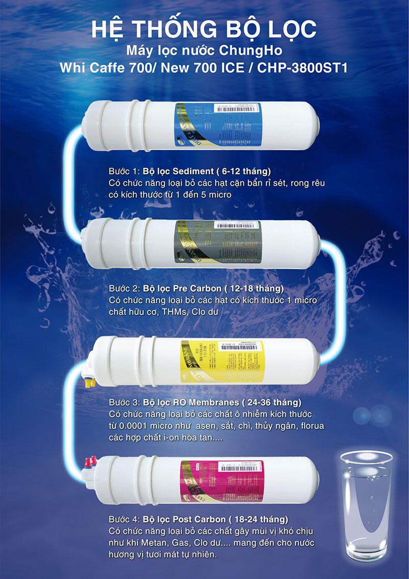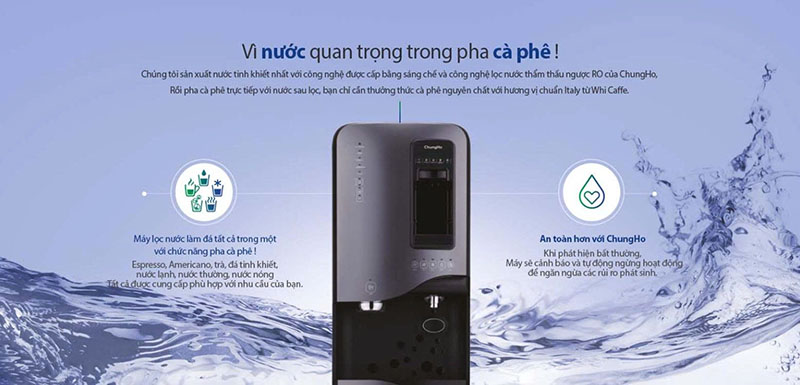 MÁY LỌC NƯỚC NÓNG – LẠNH – NGUỘI – LÀM ĐÁ – PHA CÀ PHÊ CHUNGHO WHI CAFFE
