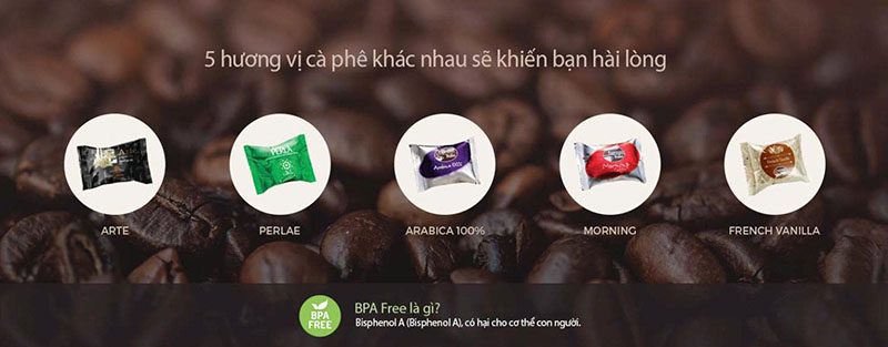 Máy sử dụng công nghệ pha cà phê viên capsule độc đáo, cho tỉ lệ nước chuẩn xác, tạo nên ly cà phê Espresso chuẩn vị Italy chỉ trong vài chục giây. Các hương vị nổi bật gồm: