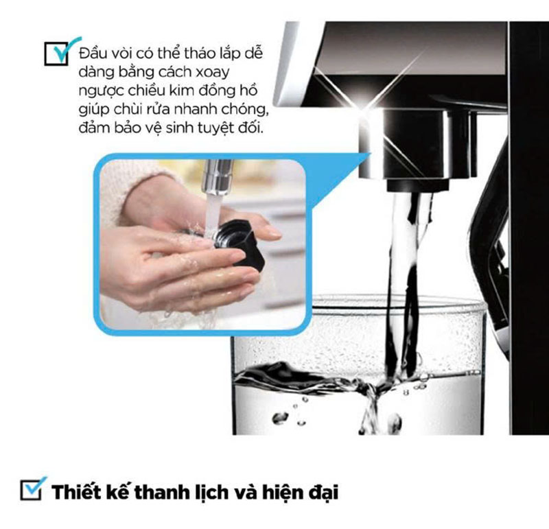 ♦ Công nghệ RO thẩm thấu ngược loại bỏ 99,9% vi khuẩn và kim loại nặng