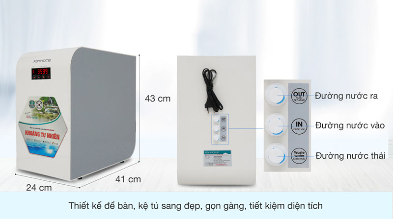 Korihome WPK-606-MN có khả năng lọc 15 lít/giờ, kèm bình chứa 8.14 lít đảm bảo cung cấp nước liên tục cho gia đình.