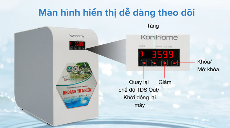 ♦ Màn hình LED hiển thị TDS, báo thay lõi tiện lợi