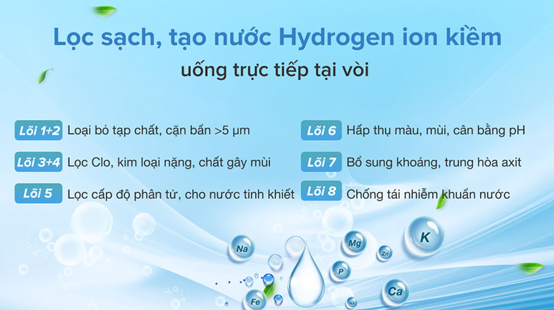 Nước sau lọc đạt độ tinh khiết cao, bổ sung khoáng tự nhiên, an toàn tuyệt đối cho sức khỏe mà không cần đun sôi.