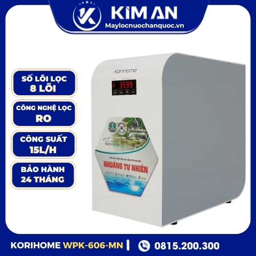 Máy lọc nước RO Korihome WPK-606-MN là lựa chọn hoàn hảo cho gia đình hiện đại nhờ thiết kế nhỏ gọn, lọc nước hiệu quả với 8 lõi cao cấp và màng RO Hàn Quốc. Không chỉ mang đến nguồn nước sạch tinh khiết, máy còn tích hợp nhiều tiện ích như tự động súc rửa, báo thay lõi, hiển thị TDS giúp người dùng yên tâm sử dụng.