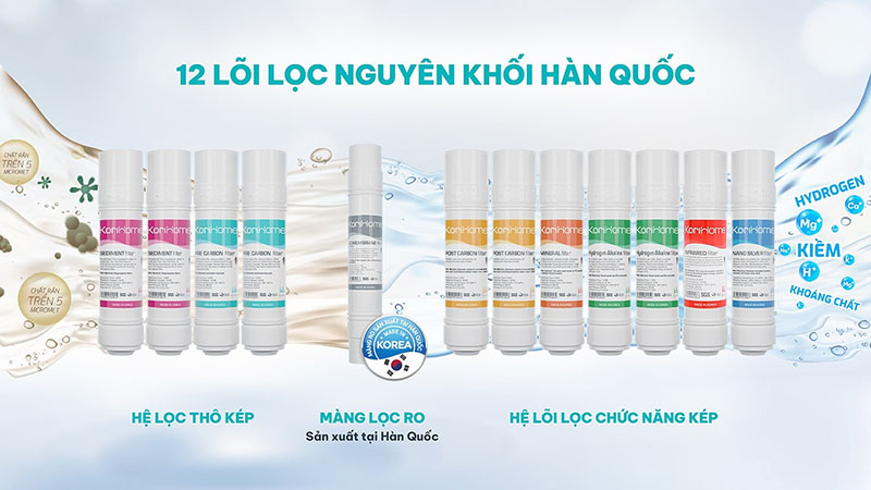 ♦ 12 lõi lọc Hàn Quốc, nước uống trực tiếp.